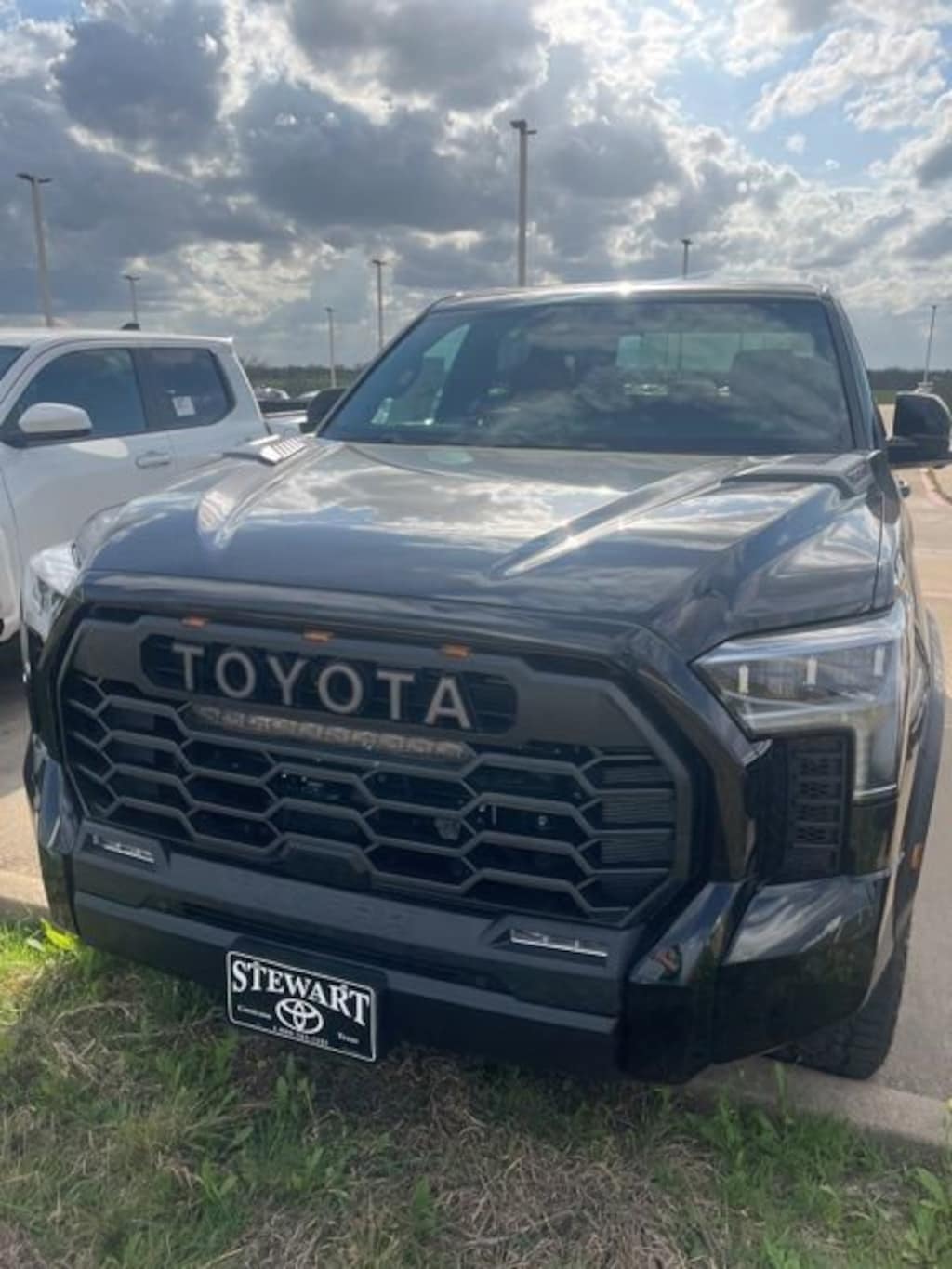 - Black 'TOYOTA' heritage grille with integrated light bar, amber marker lights, and color-keyed surround